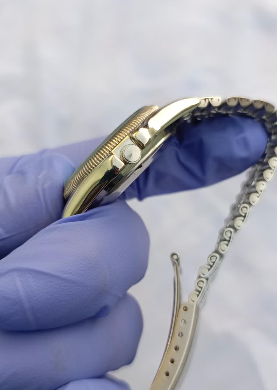 Case Material: Two-tone (Stainless Steel with Gold-tone accents on the bezel)