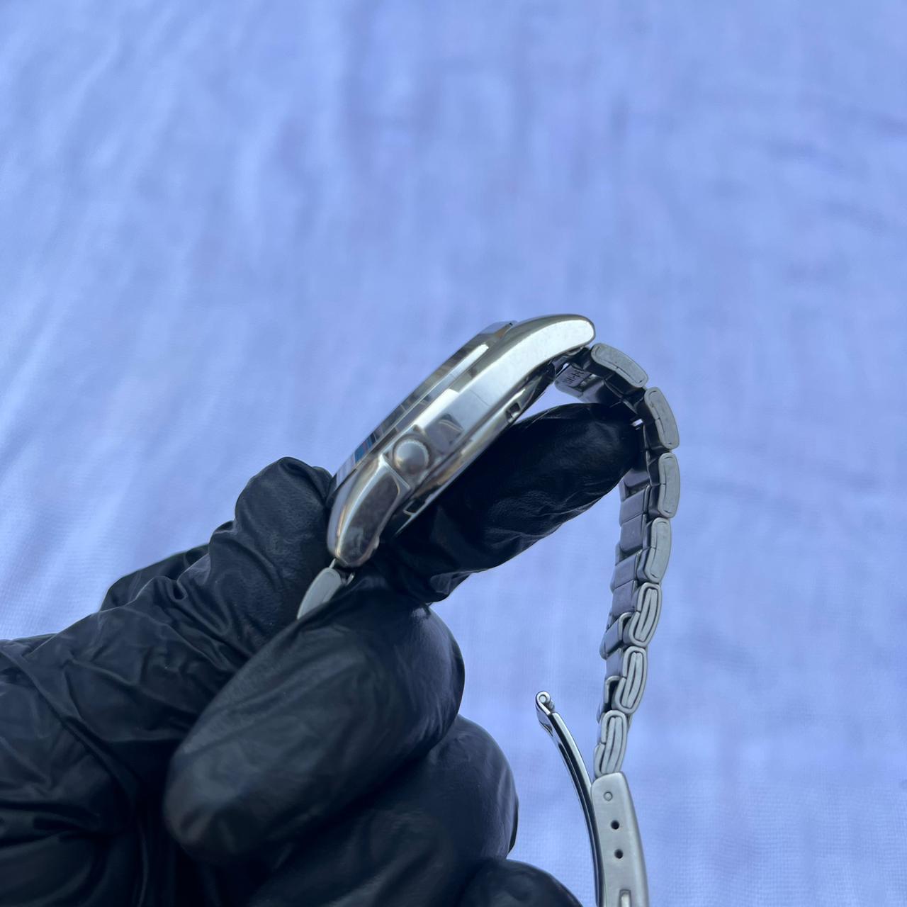 Hands: Broad luminous Arrow-style hands with a slim seconds hand