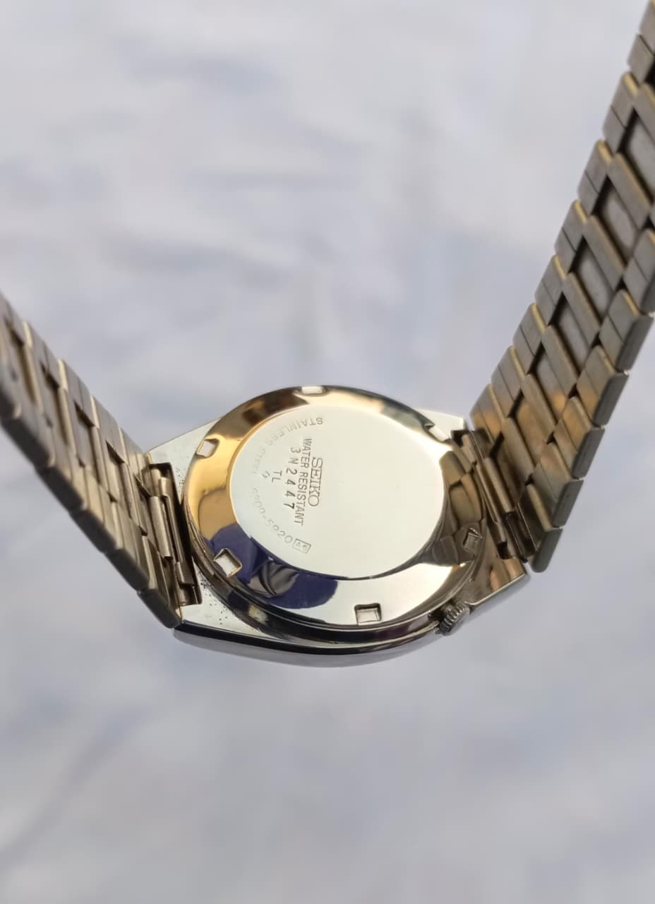 Day/Date Window: Displays Day (English and Arabic script) and Date