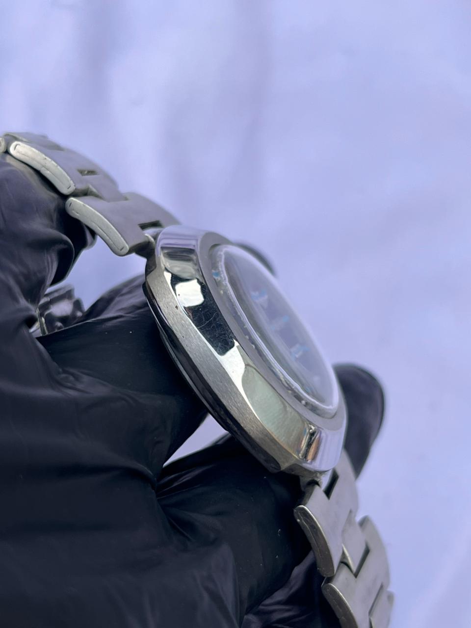 Dial Color: Iridescent blue sunburst with luminous rectangle indices.