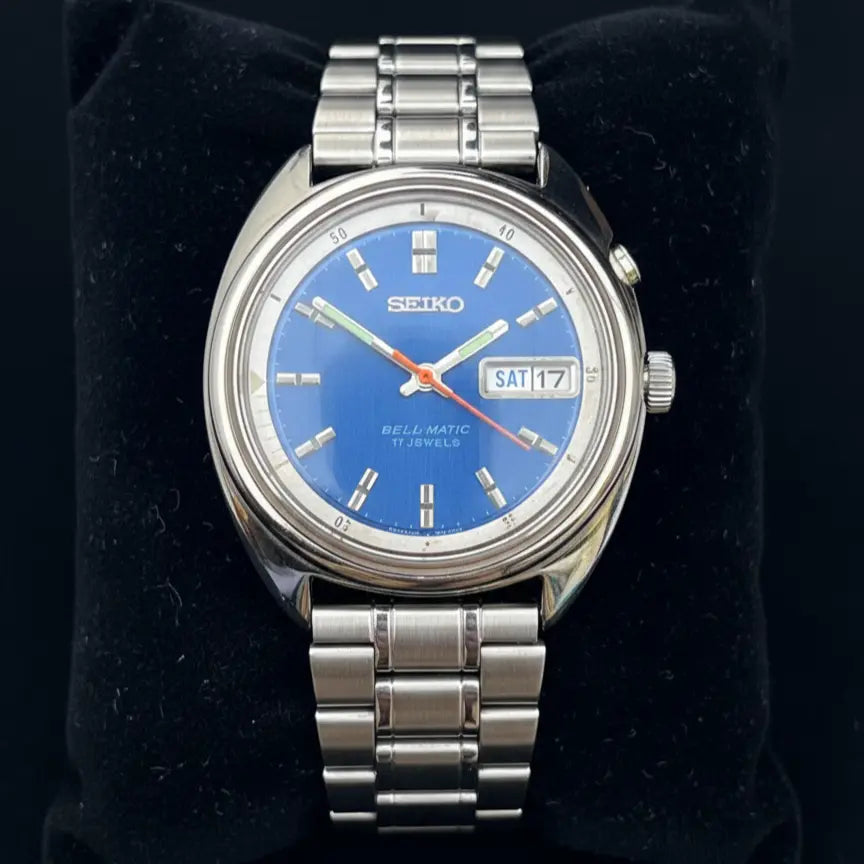 This watch is a striking example of vintage engineering, specifically the Seiko Bell-Matic, which is highly regarded for its rare mechanical alarm complication. While it shares the legendary durability of the Seiko brand, it is a more complex timepiece than a standard Seiko 5, featuring an internal rotating alarm bezel and a dedicated alarm button.
